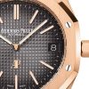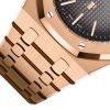 Unworn Audemars Piguet Royal Oak “JUMBO” EXTRA-THIN “50TH ANNIVERSARY” 16202OR.OO.1240OR.01. 39 mm, Smoked grey dial with “Petite Tapisserie” pattern, pink gold applied hour-markers and Royal Oak hands with luminescent coating, 18-carat pink gold case, glareproofed sapphire crystal and caseback, 7121 calibre, Selfwinding movement, 55 h power reserve, 33 jewels, 18-carat pink gold bracelet with 18-carat pink gold AP folding clasp. Water resistant to 50 m. Make: Audemars Piguet Model: Royal Oak Reference: 16202OR.OO.1240OR.01 Diameter: 39 mm Case material: 18-carat pink gold Dial color: Smoked grey Bezel Type: Fixed Bezel Color: Pink Bezel Material: 18-carat pink gold Crystal: Glareproofed sapphire crystal Calibre: 7121 Movement: Selfwinding Number of Jewels: 33 Power Reserve 55 h Bracelet Material: 18-carat pink gold Clasp: AP folding clasp Functions: Hours, minutes and date Water resistance: 50 m