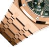 Unworn Audemars Piguet Royal Oak SELFWINDING CHRONOGRAPH “50TH ANNIVERSARY” 26240OR.OO.1320OR.04. 41 mm, Khaki green dial with “Grande Tapisserie” pattern, khaki green counters, pink gold applied hour-markers and Royal Oak hands with luminescent coating, 18-carat pink gold case, glareproofed sapphire crystal and caseback, screw-locked crown, 4401 calibre, Selfwinding movement, 70 h power reserve, 40 jewels,  18-carat pink gold bracelet with AP folding clasp. Water resistant to 50 m.