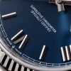The sunray finish creates delicate light reflections on many dials in the Oyster Perpetual collection. It is obtained using masterful brushing techniques that create grooves running outwards from the centre of the dial. Light is diffused consistently along each engraving, creating a characteristic subtle glow that moves depending on the position of the wrist. Once the sunray finish has been completed, the dial colour is applied using Physical Vapour Deposition or electroplating. A light coat of varnish gives the dial its final look.