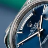 The Rolex fluted bezel is a mark of distinction. Originally, the fluting of the Oyster bezel had a functional purpose: it served to screw the bezel onto the case helping to ensure the waterproofness of the watch. It was therefore identical to the fluting on the case back, which was also screwed onto the case for waterproofness, using specific Rolex tools. Over time, the fluting became an aesthetic element, a genuine Rolex signature feature. Today the fluted bezel is a mark of distinction, in gold on this Day-Date 40.