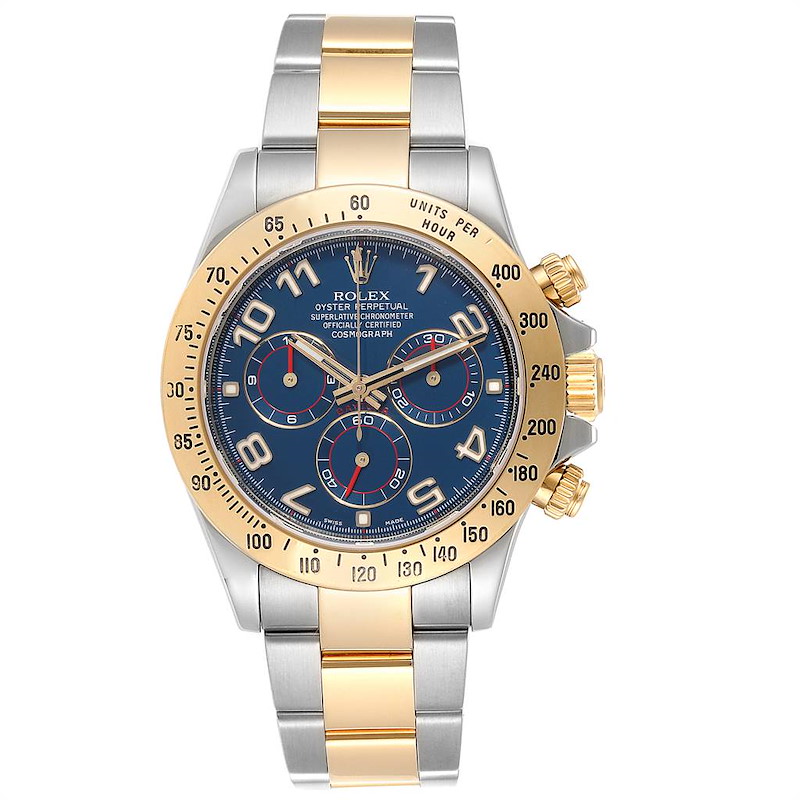 Rolex Daytona Steel Yellow Gold Blue Racing Dial Mens Watch
