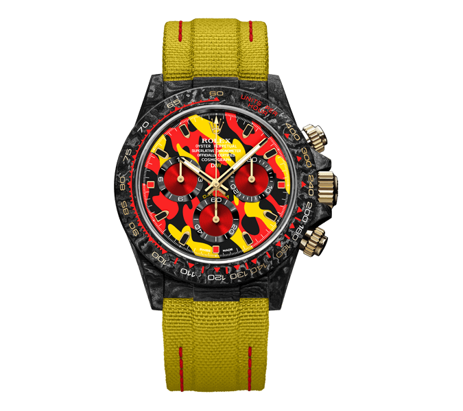 The Military series gathered the best of modern trends, while at the same time keeping the traditional aspects of the Rolex Daytona. A fantastic combination of bright colors makes this piece a perfect member of the collection.