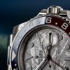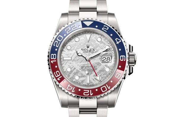 This model is the only GMT-Master II with a meteorite dial. Meteorite comes from the heart of an asteroid or possibly even a planet that has exploded, propelling material across the Solar System until chance brings it into our planet’s orbit and gravity pulls it to Earth. During its journey, the centre of the meteorite is gradually transformed, producing highly unusual metallic patterns, resulting from the very slow cooling of molten asteroid cores. The designers at Rolex create from these configurations a unique treasure for some of the most prestigious models, including this GMT-Master II.