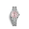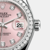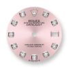 • Dial color: Pink dial with a fine sunrays and 10 Diamonds as hour markers framed in 18k White Gold